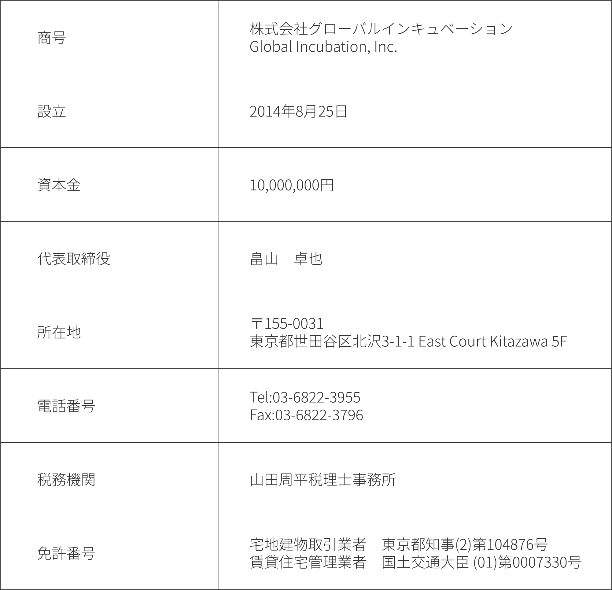 COMPANY 会社概要 会社概要 本社 〒155-0031 東京都世田谷区北沢3-1-1 East Court Kitazawa 5F 本社 〒155-0031 東京都世田谷区北沢3-1-1 East Court Kitazawa 5F